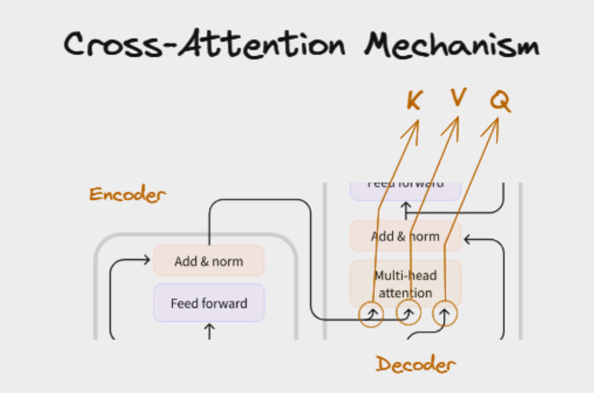 Cross-Attention - Q comes from decoder and K, V come from encoder